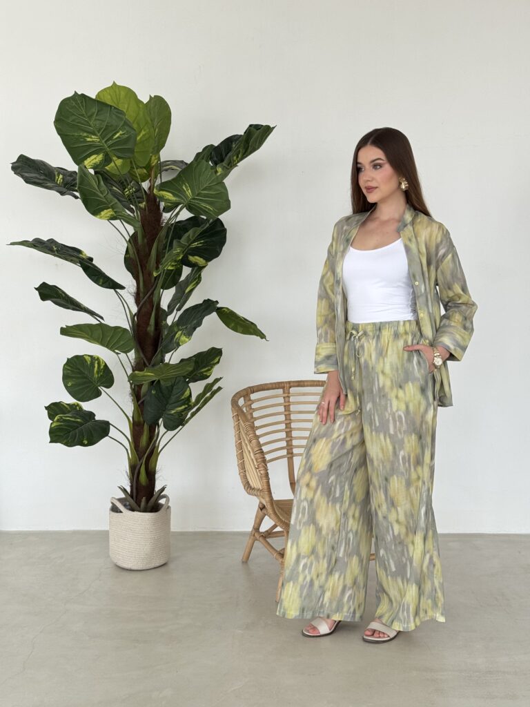 بدلة خفيفة و عملية مع بنطلون مبطن من قماش بارد، تصميم يجمع بين الراحة و الأناقة.