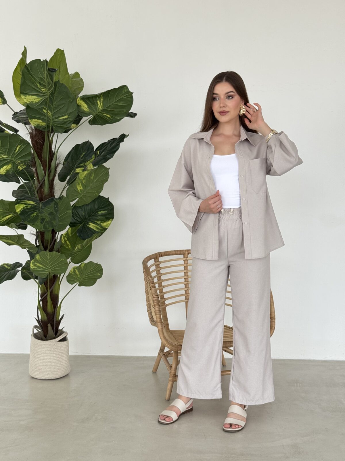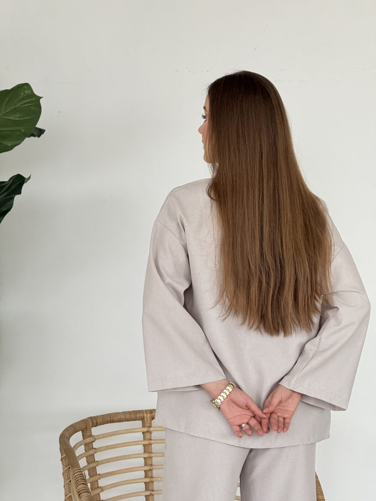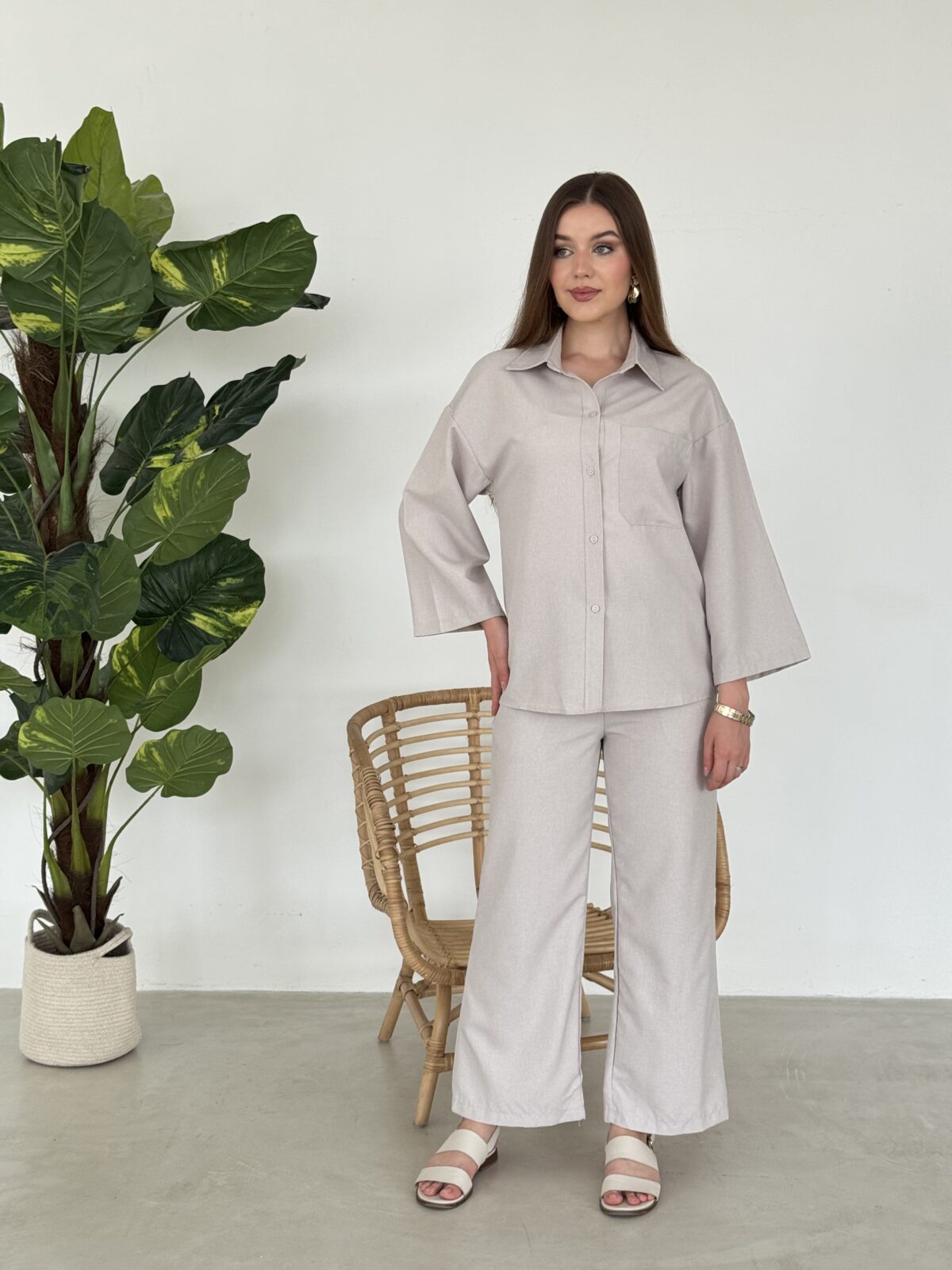بدلة مصممة من قماش اللينن بلون عملي يناسب جميع المواسم..