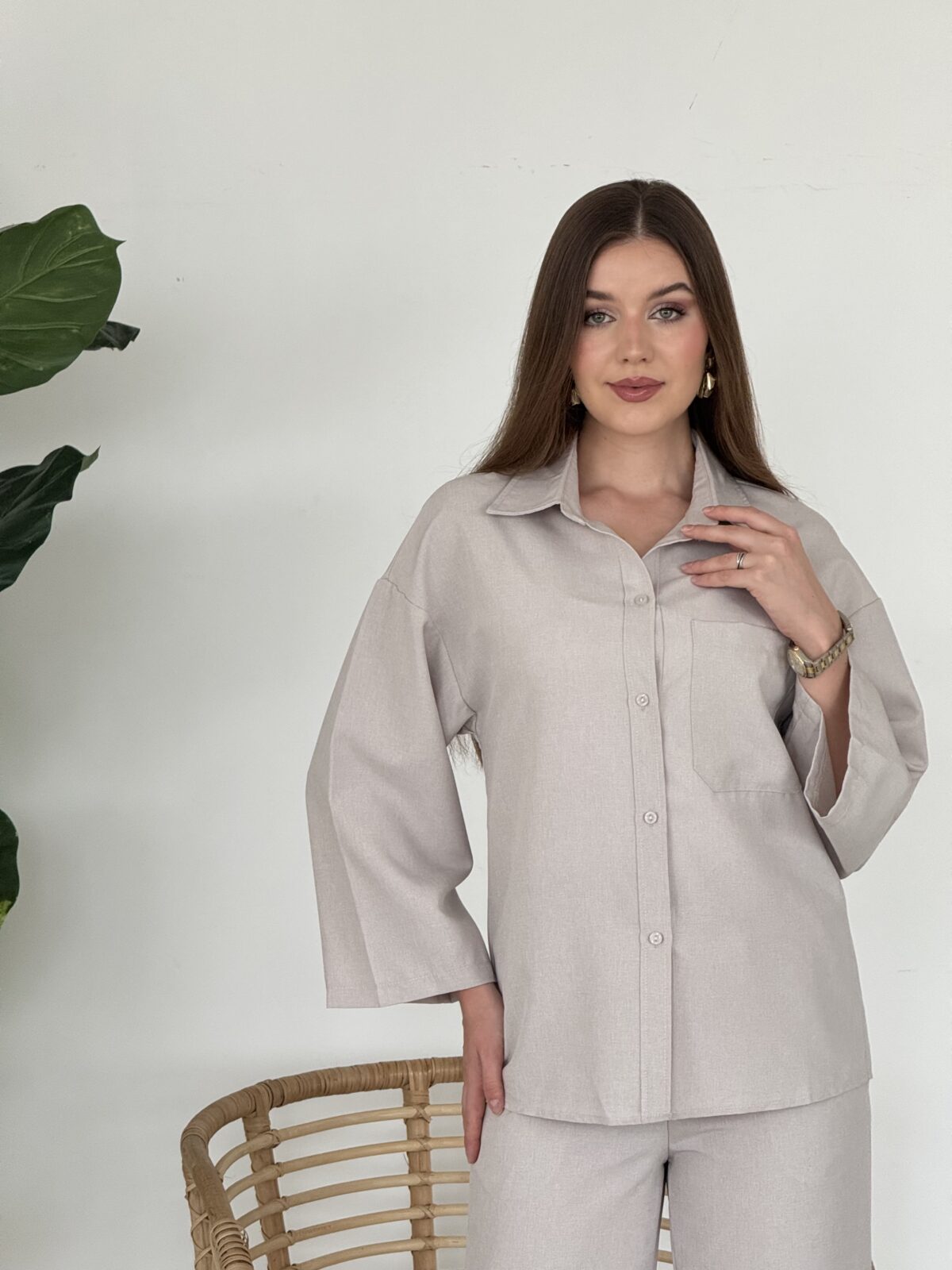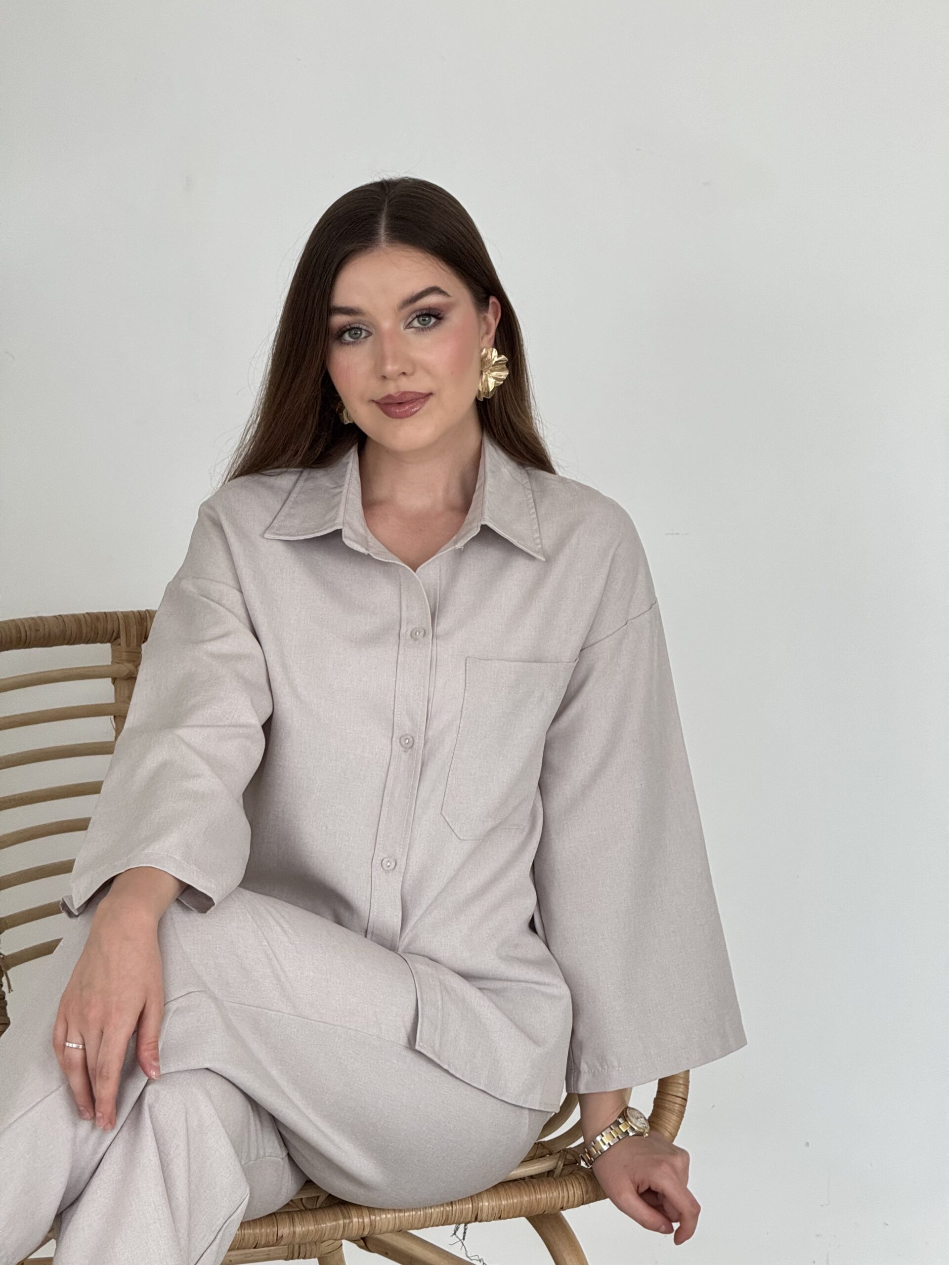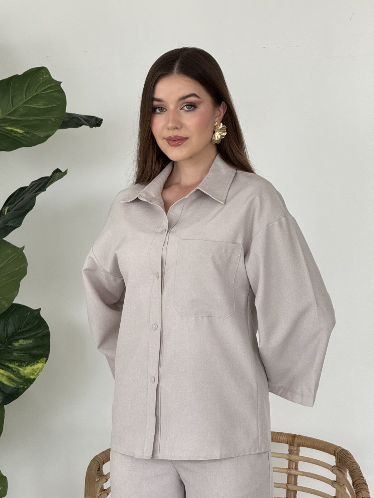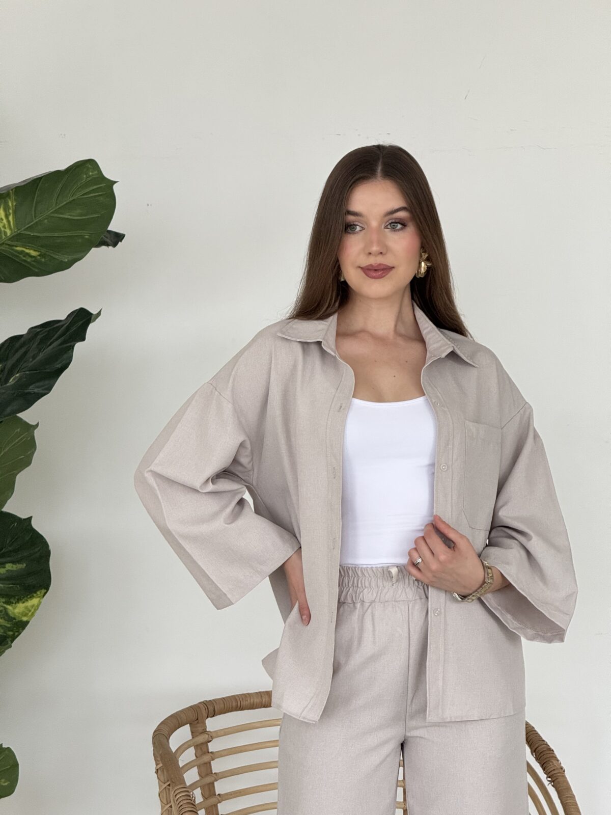 بدلة مصممة من قماش اللينن بلون عملي يناسب جميع المواسم..