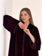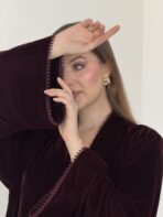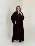 عباية مخمل باللون الماروني المميز... لمسة فخامة تليق باطلالتك اليومية و المناسبات