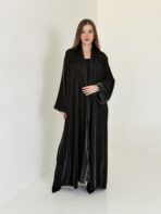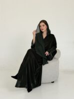 عباية مخمل فخمة باللون الزيتي... اختيار مثالي لإطلالة يومية راقية أو مناسبة خاصة