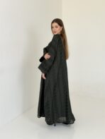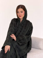 عباية فاخرة مزينة بتطريزات موردة تغطي كامل العباية.. تفاصيل راقية تضيف لمسة أنثوية ساحرة لكل إطلالة...